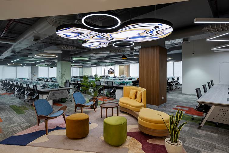 - These creative spaces double as breakout areas, offering employees a place to relax and recharge.